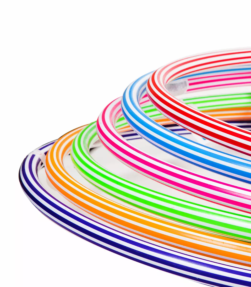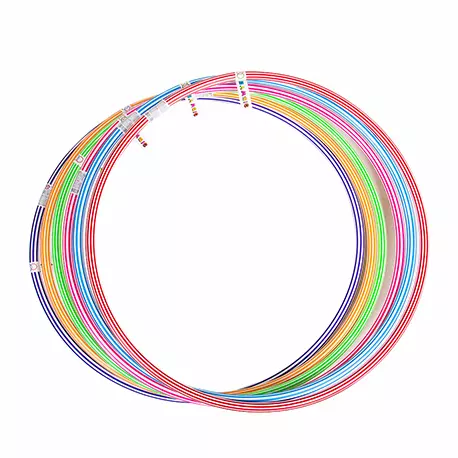 є досить безпечним і чудово підійде для кожної дитини. Він має оригінальну гаму кольорів. Білий колір є основним і він переплітається з іншими кольорами, але полосково. Тобто білий може переплітатися у вигляді "зебри" із синім, білий із червони, салатовим, жовтим, рожевим , фіолетовим. Обруч виготовлений із якісного пластику і має діаметр 82см. Використання обруча буде сприяти фізичному розвитку дитини.