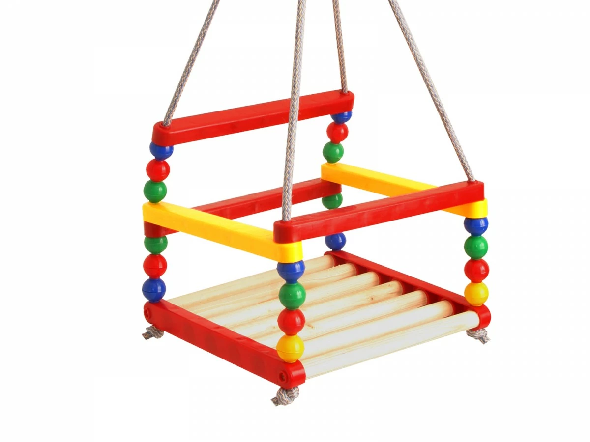 Вага 1060 г Габаритні розміри 30?30?25 см Переносна дитяча гойдалка дерев'яна. Можна використовувати як в приміщенні, так і на вулиці. Компактні, легкі, складаються в абсолютно мізерний обсяг і легко перевозяться з собою під час поїздок до родичів або на відпочинок. Гойдалка має яскраві соковиті кольори які інтуїтивно подобаються маленьким дітям. Створіть дитині дитячий майданчик не виходячи з дому. Виріб виконаний з дерева, найбільш екологічного і природного матеріалу доступного у виготовленні товарів для дітей.
