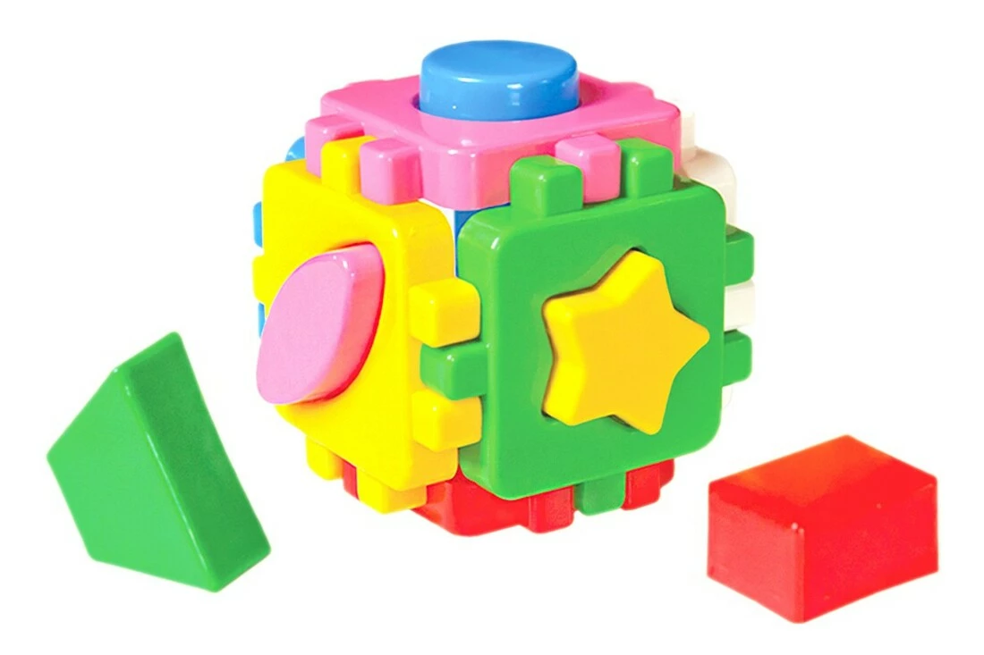 Дитяча іграшка-сортер «Міні» дуже барвиста і яскрава, вона зможе зацікавити будь-якого малюка надовго. По суті, вона є головоломкою, адже Вашому чаду доведеться спочатку збагнути, як саме зібрати її в єдину конструкцію. Іграшка передбачає два способи з'єднання деталей: за принципом пазлів і як вкладиші. Маленькі зірочки, трикутники, гуртки та інші фігурки дитина повинна буде вкласти у відповідні за формою отвори на плитках, які він потім з'єднає за допомогою пазів. Подібне проведення дозвілля не тільки захопить крихітку, але і допоможе йому розвиватися правильно, покращуючи його логічне та образне мислення, творчі здібності і дрібну моторику рук. Характеристики Іграшка виготовлена з пластику. Складається з 6 граней і 6 знімних елементів. Довжина: 10 см Висота: 10 см Товщина: 10 см Комплектація 1 іграшка.