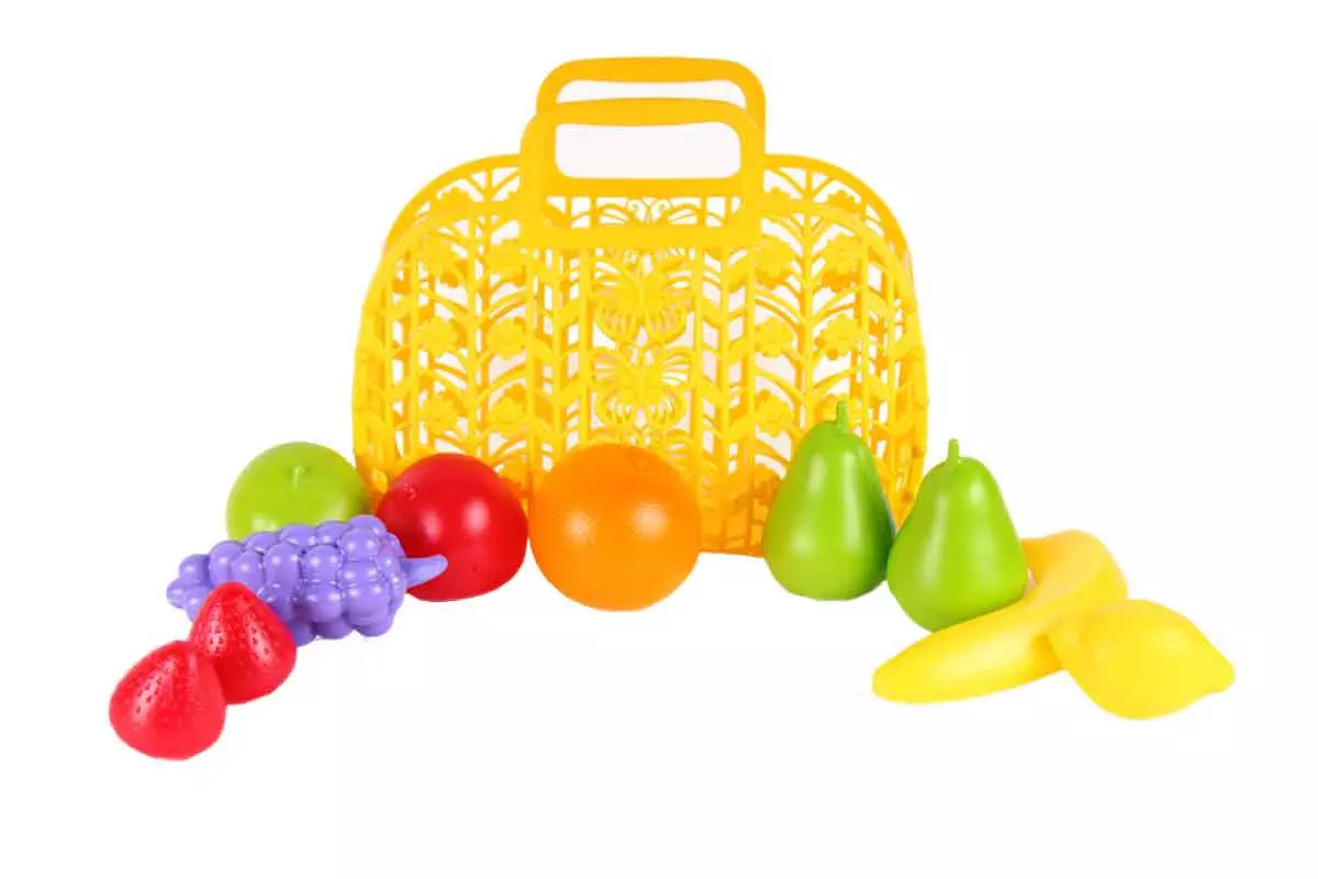 Набір фруктів знадобиться на іграшковій кухні всіх маленьких господинь. З ним дітки зможуть придумати для своїх іграшкових друзів різні корисні страви. Окрім сюжетно-рольової гри за допомогою такого набору малюк зможе познайомитись з основними фруктами, а також вивчити кольори та форми. Комплектація: банан, лимон, виноград, апельсин, яблуко - 2 шт, груша - 2 шт., полуниця - 2 шт., кошичок.
