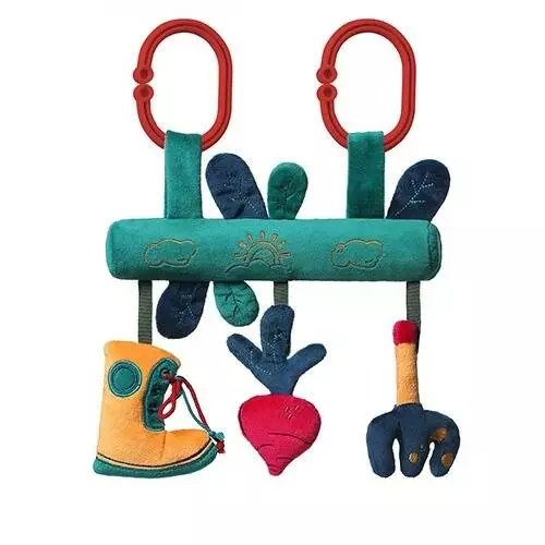 <p>Розвиваюча іграшка GARDEN BOY познайомить дитину з різноманітним світом кольорів, звуків та форм. Форма дуги дозволяє підвішувати іграшку на всі види автомобільних сидінь чи колясок. Таким чином, вона може супроводжувати дитину під час подорожей та прогулянок.</p><p>Ідея колекції полягає в тому, щоб стимулювати цікавість дитини та спонукати її до дії через гру. Він набуває нових навичок. Колекція для спонукання сенсорної та розумової діяльності.<br>Характеристика:</p><ul><li>Завдяки своїй формі іграшку можна прикріпити до автокрісла, коляски або ліжечка.</li><li>Шуршащі елементи, зацікавлять і привернуть увагу дитини.</li><li>Звук гуркотіння, що діє на дитину заспокійливо.</li><li>Звук пищалки, розташований в іграшці, пробуджує інтерес і вчить причинно-наслідковим зв'язкам</li><li>Довгі нитки з петельками на кінцях стимулює почуття дотику дитини і одночасно дає можливість навчитися зав'язувати їх.</li></ul>