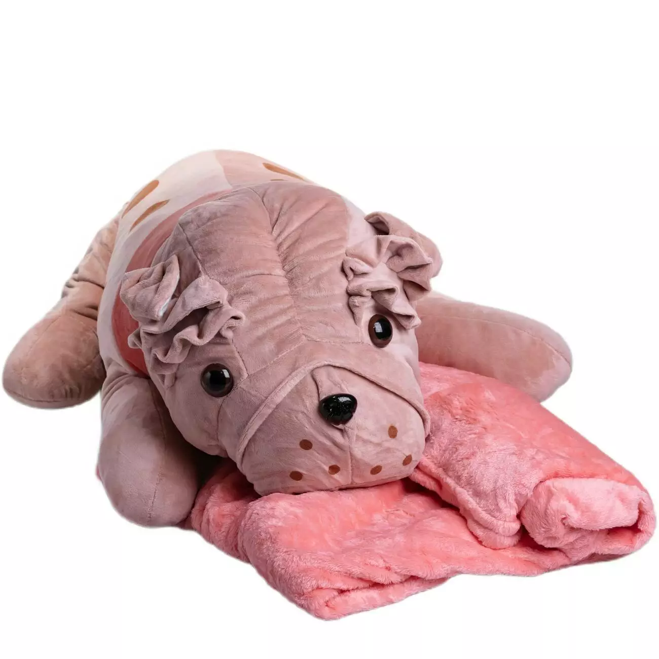 Іграшка-подушка у вигляді милого цуценяти стане не лише чудовим аксесуаром для дому, але й оригінальним подарунком, який сподобається і дітям, і дорослим. Усередині собачки знаходиться плед, виконаний з коралового флісу - м'якого, теплого та дихаючого матеріалу, який швидко сохне після прання та не викликає подразнення шкіри.
