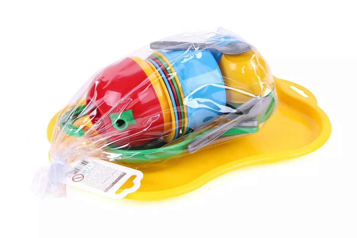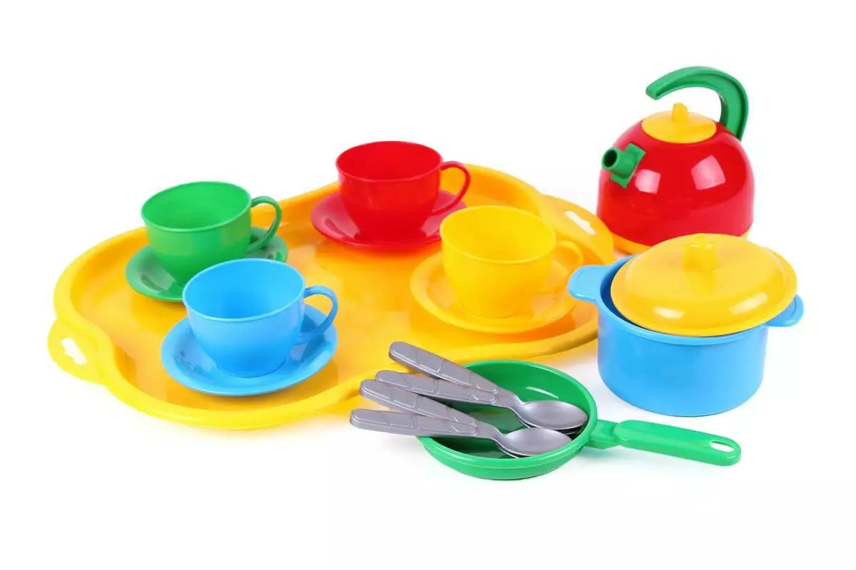 Вага 250 г Габаритні розміри 32?23?11 см Комплект складається з 4-х чашок, тарілок та ложок, чайника, сковорідки, каструлі та підносу. Посуд - чудова іграшка для майбутніх господинь. З посудом Маринка Ваше малятко відчує себе в ролі справжньої господині і зможе накрити стіл для своїх ляльок. У комплекті є прилади для готування, їжі і чаювання. Вони виготовлені з міцних матеріалів, що відповідають всім стандартам якості і безпеки. Сюжетно-рольові ігри з набором сприяють розвитку дитячої уяви, мислення і фантазії.