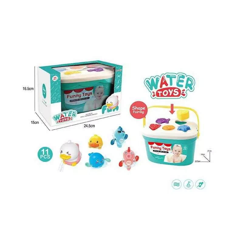 Іграшки для ванни JX 333 (48/2) заводні іграшки, гумове каченя, лійка, сортер, в коробці