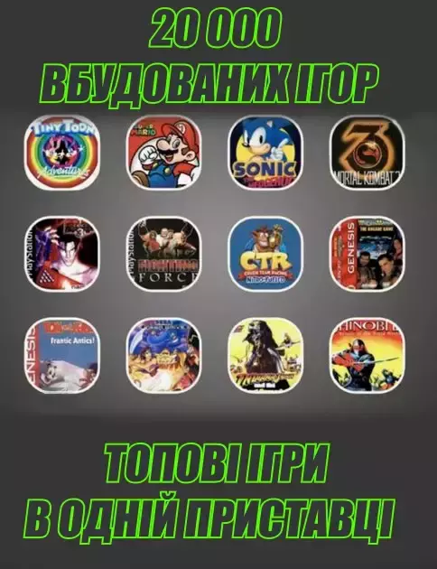 • Широкий выбор игр: Включает 15000 классических аркадных игр из периода 80-х, 90-х и 2000-х годов, обеспечивая непревзойденное игровое разнообразие.