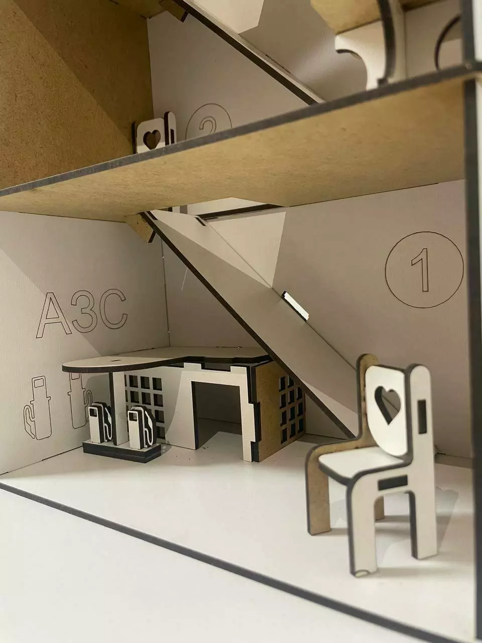 Все элементы гаража надежно закреплены. Пологие спуски для машинок