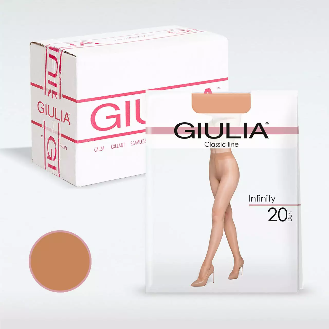 Ці шовковисті та еластичні колготи без шортиків Giulia INFINITY 20 відрізняються м'яким комфортним поясом T-band і бавовняною ластовицею для забезпечення додаткового комфорту. Пласкі шви, щільність 20 den та матова поверхня роблять їх максимально непомітними під одягом, забезпечуючи стиль і бездоганний вигляд.