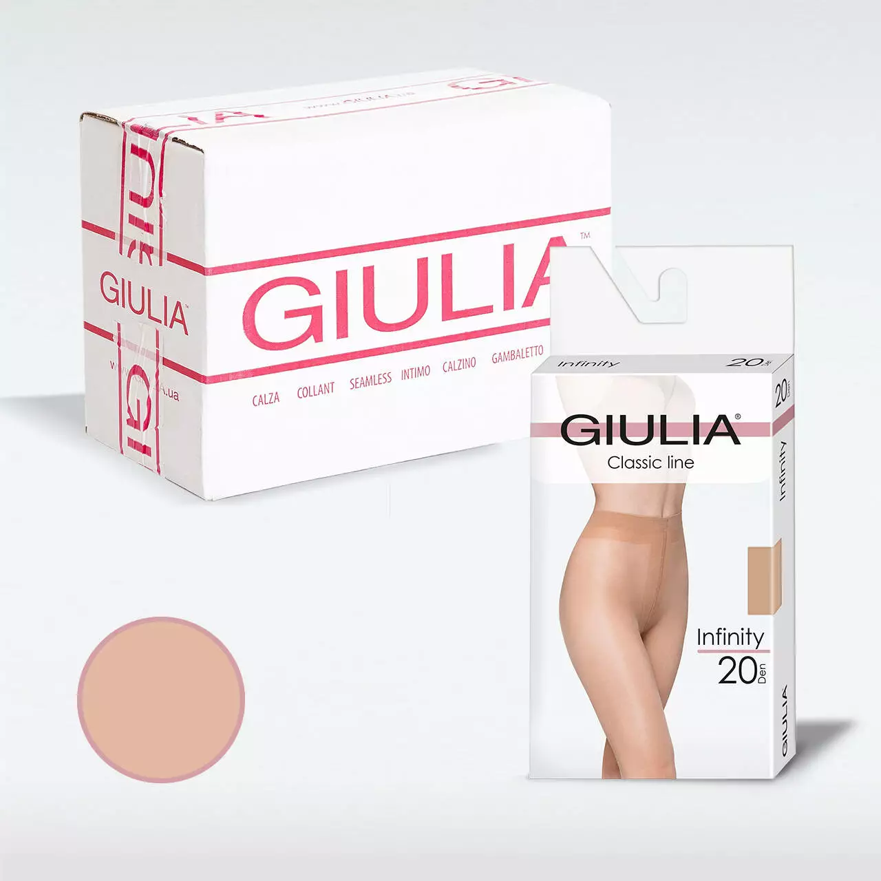 Ці шовковисті та еластичні колготи без шортиків Giulia INFINITY 20 відрізняються м'яким комфортним поясом T-band і бавовняною ластовицею для забезпечення додаткового комфорту. Пласкі шви, щільність 20 den та матова поверхня роблять їх максимально непомітними під одягом, забезпечуючи стиль і бездоганний вигляд.