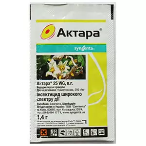 Инсектицид широкого спектра действия от швейцарского производителя "Сингента". Норма расхода: 1 пакет на 10 л воды.Действующее вещество: тиаметоксам, 250 г/кг. Для чего применяется: В течение 30 минут после обработки вредители перестают питаться, а в течение суток гибнут. От каких вредителей: Защита картошки от колорадского жука, смородины — от тли, цветочные культуры — от тли, белокрылки, трипсов, щитовок и ложнощитовок, дротянки, личинки хрущей, капустянки, долгоносики, клопы, цветоеды, пильщики и другие. На чем: Картофель, томат, перец, баклажан, капуста, яблоня, саженцы хвойных, земляника, сахарная свекла, горох. Опрыскивать можно при скорости ветра не более 5 м/с. Ежедневно по окончании работ нужно промывать бак, магистральные трубопроводы и наконечники чистой водой. На какую площадь, сколько растений можно обработать: Расчет дозировки препарата указан в инструкции, от 0,07 л/га до 0,16 л/га и зависит от культуры и вида вредителя. Совместимость: Совместим с большинством стандартных фунгицидов и инсектицидов.Но до смешивания нужно проверить компоненты на совместимость. Период защитного действия: Не менее 14 суток. Характер и скорость воздействия: Действие препарата начинается через 2–3 часа после обработки. Существующие ограничения: Запрещается применять препарат в санитарной зоне рыбохозяйственных водоемов, а также внесение препарата авиационным методом! Класс токсичности по Классификации ВООЗ: 3-й класс опасности (2 класс по стойкости в почве), 1-й клас опасности для пчел