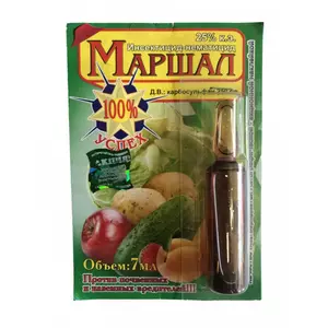 Маршал применяется против почвенных и наземных вредителей, грызущих и сосущих насекомых, имеет нематицидные свойства. Маршал обладает длительным защитным эффектом и моментальной скоростью воздействия. Хорошо переносится культурами, не фитотоксичен. Устойчив к высоким температурам.