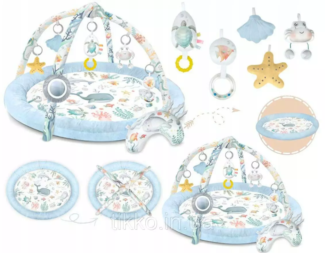 в набір входить: килимок, вбудоване сповивання, 2 пов'язки, 7