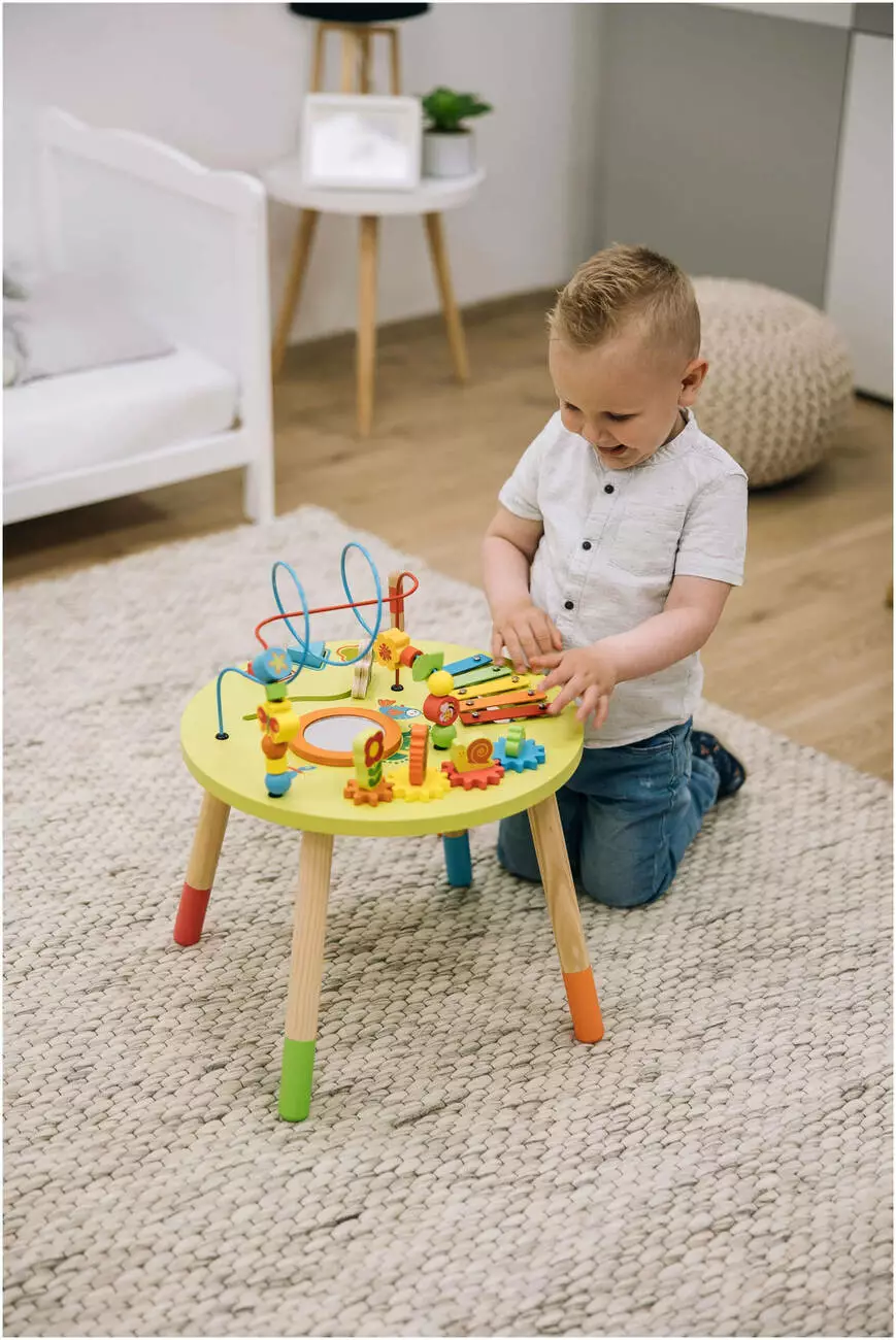 <div>Інтерактивний стіл Free2Play Playzone - ідеальна іграшка для вашої дитини.</div> <div> <br></div> <div>Стіл обладнано різноманітними елементами, які стимулюють та розвивають моторику вашої дитини. Різноманітні обертаючіся форми та рухомий цуценя покращують моторику та координацію рук та очей. Лабіринт з різними персонажами стимулює концентрацію дитини, логічне мислення та вирішення проблем.</div> <div> <br></div> <div>Також є ксилофон, який дозволяє вашій дитині створювати мелодії та досліджувати різні звуки.</div> <div> <br></div> <div>Крім того, на столі є сортер форм для пошуку визнання форм, кольорів та здатності вирішувати прості головоломки.</div> <div> <br></div> <div>Привабливі дитячі кольори привертають їх увагу та стимулюють допитливість. Додатково дзеркало заохочує дитину відкривати своє відображення та досліджувати навколишній світ.</div> <div> <br></div> <div>Висота столу - 48 см, діаметр - 41 см. Ви можете розмістити його на підлозі або на відповідному столі, що надає гнучкість згідно з бажаннями та потребами вашої дитини.</div> <div> <br></div> <div>Інтерактивний стіл Free2Play Playzone забезпечує вашу дитину годинами веселощів, одночасно сприяючи її всебічному розвитку. Залиште вашу дитину в чарівний світ гри, дослідження та творчості з нашим активіті-столом.</div> <div> <br></div> <div>Пропонуйте вашій дитині найкращий ігровий досвід з нашим інтерактивним столом, де навчання і розваги поєднуються! </div> <div> <br></div> <div> <b>FreeON</b> - це європейський бренд, який пропонує широкий асортимент товарів для малюків та дитячого обладнання. Протягом понад 10 років наші продукти збагачують життя багатьох батьків і дітей. Включіть свободу та турботу разом із FreeON.</div> <div> <br></div> <div>Якщо у Вас виникли додаткові питання про цей товар, будь ласка, звертайтеся до нашого менеджера. Ми готові надати додаткові фотографії, відео огляд товару та забезпечити консультації щодо можливих технічних характеристик.</div>
