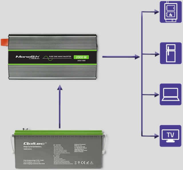 Этот продукт идеально подходит для использования в качестве источника энергии в кемперах и автофургонах во время семейных поездок. Вы планируете длительный отдых в кемпинге или на озере и ищете способ подключить ноутбук или зарядить телефон на борту? Стоит хорошо подготовиться. С инвертором марки Qoltec вы сможете питать свои устройства в любом месте и наслаждаться удобством и комфортом.