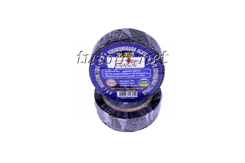 Изолента стенсон (stenson) 10м черная. Надежная изолента с мощность при растягивании 15 МПа. Длина 10 м, ширина 19 мм, толщина 0.13 мм.