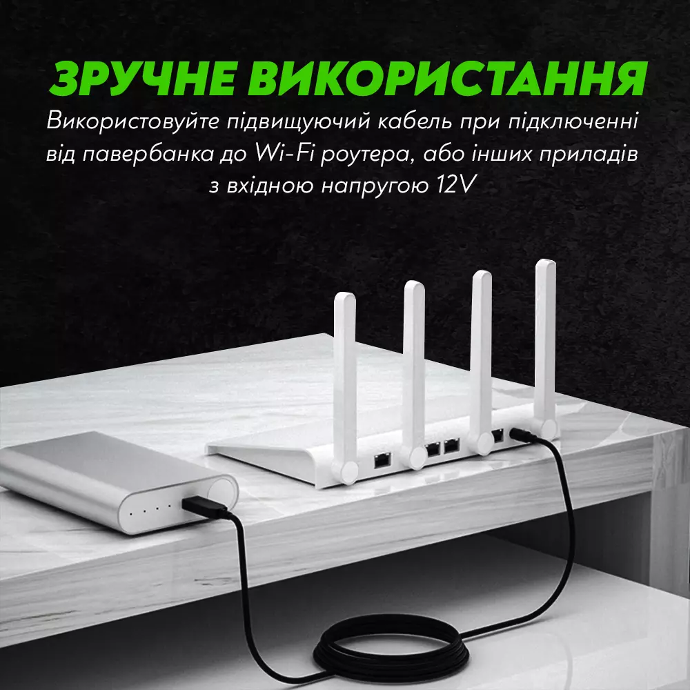 Кабель питания для Wi-Fi роутера - повышающий переходник на 12В 5.5x2.1 mm помогает при выключении электричества запитать роутер от повербанка и продолжать пользоваться интернетом (если провайдер продолжает подавать интернет к роутеру).