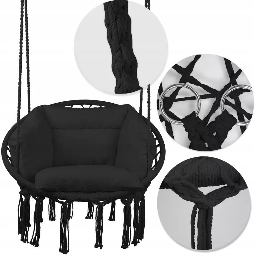 Подвесное кресло создано с использованием тонких плетений макраме, которые излучают стиль бохо и естественность. Использование хлопковых нитей макраме подчеркивает наше стремление к тесному контакту с природой и дань уважения простоте ремесленного мастерства. Благодаря своей форме, похожей на хранилище, и уникальной конструкции наша дизайнерская мебель не только предлагает удобное место для отдыха, но и сливается с окружающей средой, привлекая внимание своей уникальной эстетикой.