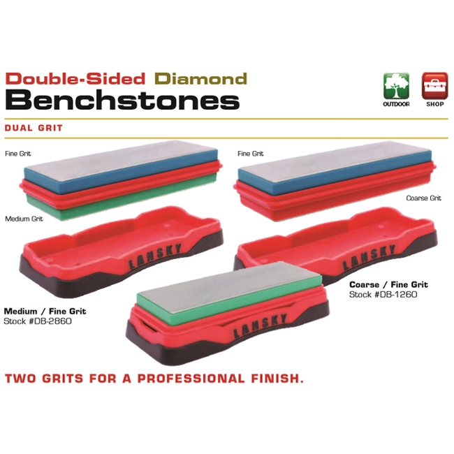 У спробі зробити заточку ножів будинку ще більш універсальною і простий, Lansky вирішила розширити свою популярну лінію Benchstone, включивши нову двосторонню алмазну Benchstone точило. Раціональне придбання для тих, хто звик користуватися товарами високої якості! Стаціонарна стругачка для ножів Lansky Double-Sided Diamond Benchstone DB-1260.