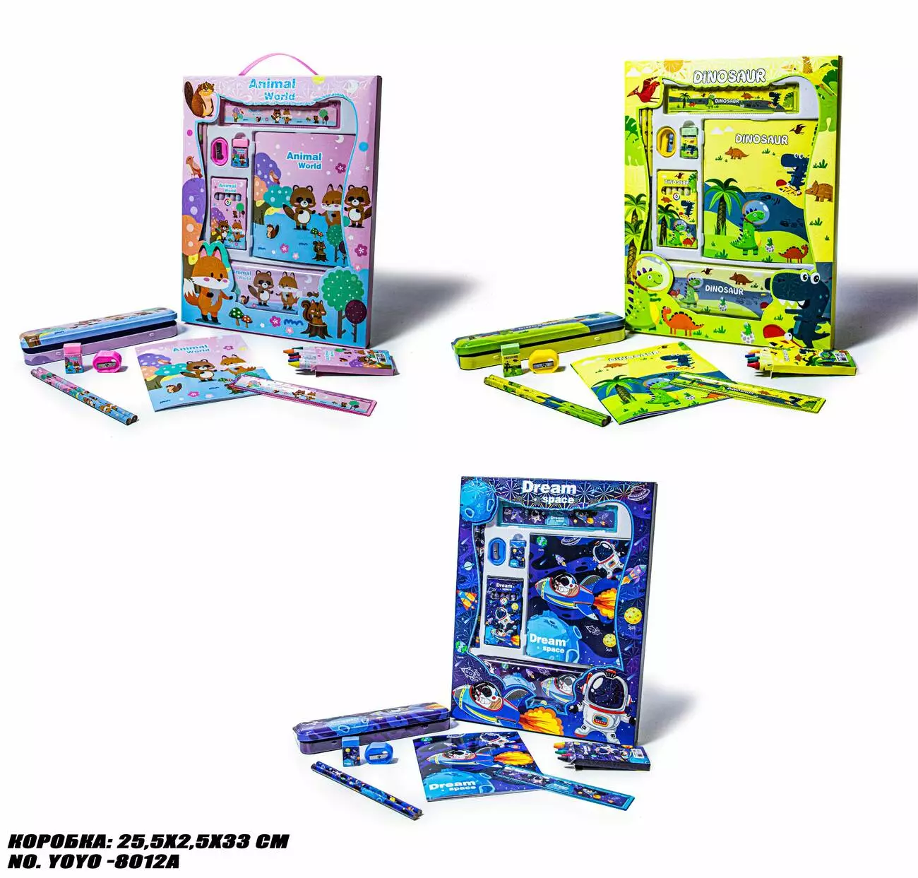 <p>Это отличный подарок для детей.Портативный и простой в использовании школьный набор канцелярских принадлежностей .</p><br /> <p><strong>В набор входит:</strong></p><br /> <ul><br /> <li> пенал</li><br /> <li> ластик,</li><br /> <li> точилка для карандашей,</li><br /> <li> тетрадь,</li><br /> <li>2 карандаша,</li><br /> <li> линейка</li><br /> <li>6 цветных мелков</li><br /> </ul><br />