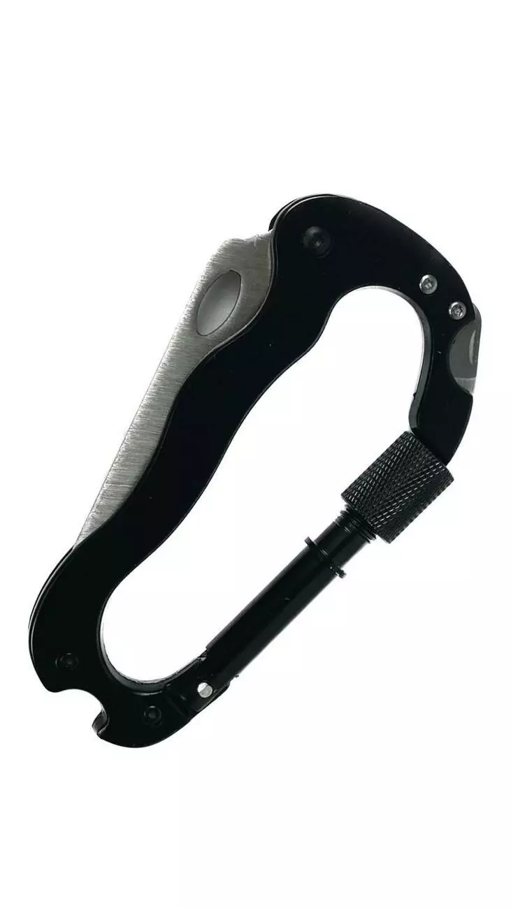 Карабін,ніж довжиною 7,5 см,пилка,плоска і хрестова викрутка.