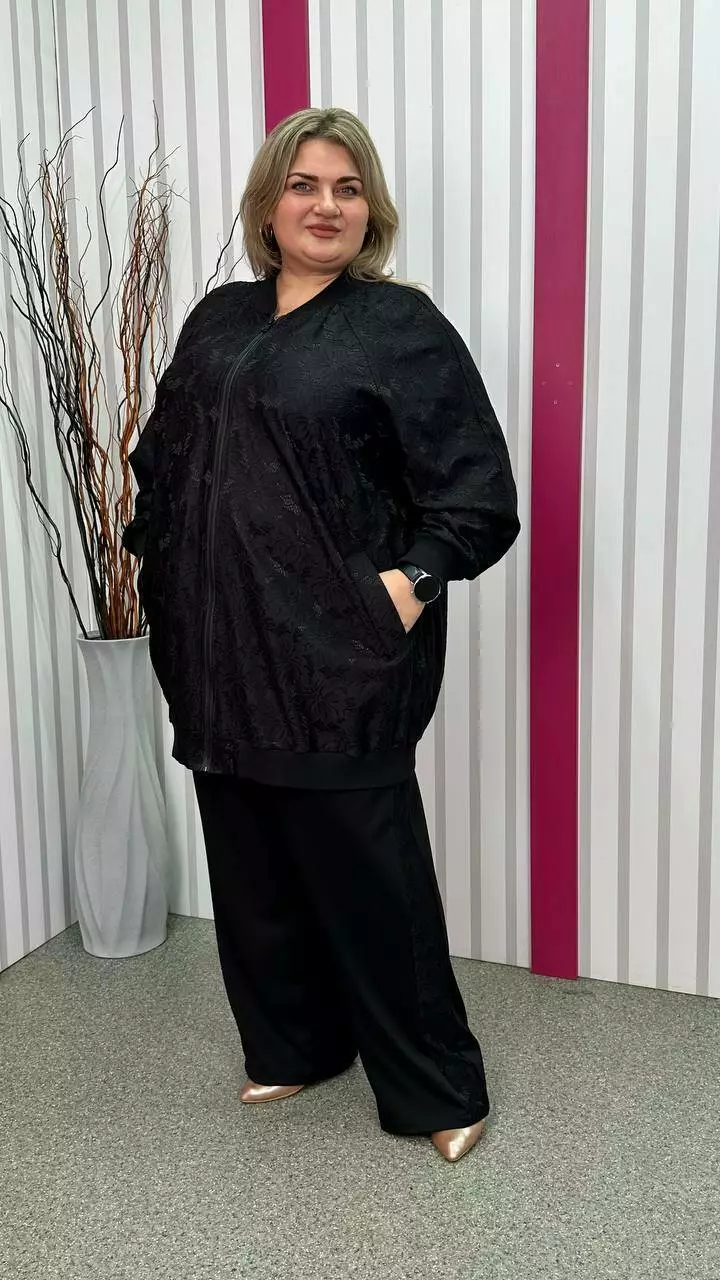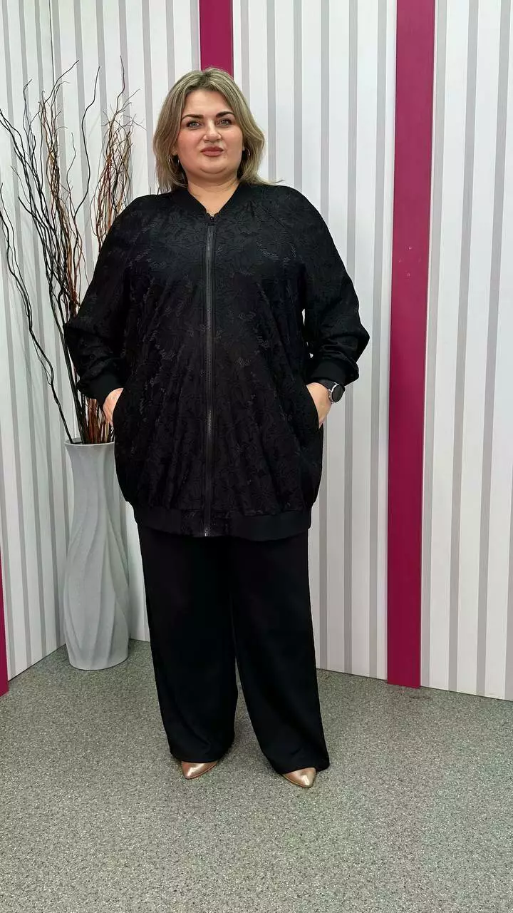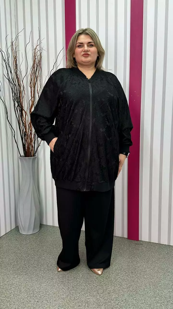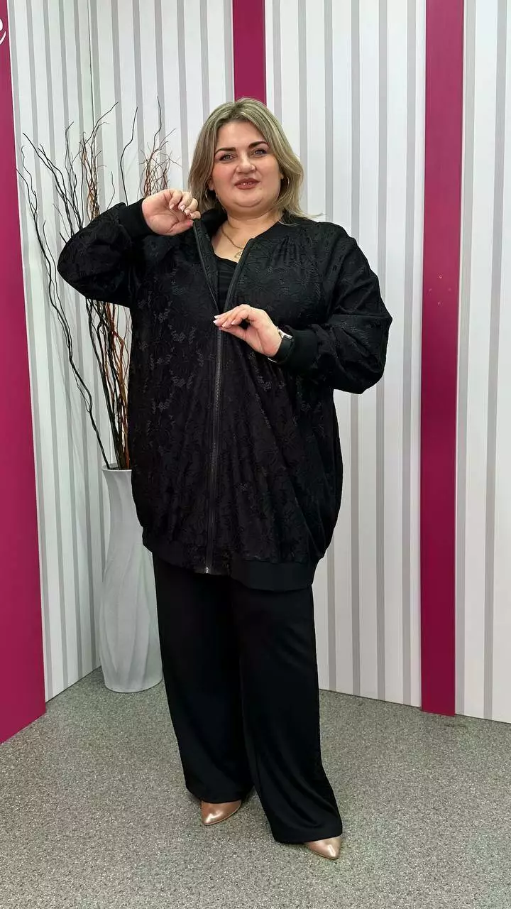 Кардиган-бомбер гіпюр "Сапфіра" чорний великого розміру 62-64 66-68 70-72 74-76
