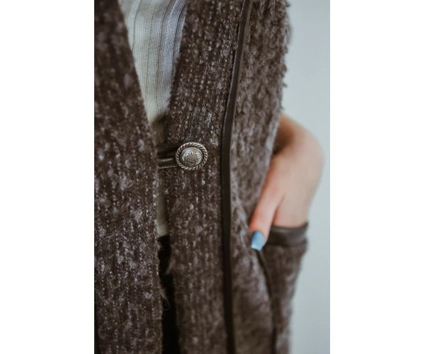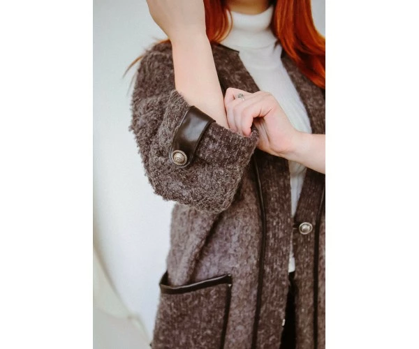 Кардиган - незаменимый и универсальный элемент в женском гардеробе. Модель Л 793-20 имеет выразительные карманы с кожаной отделкой.