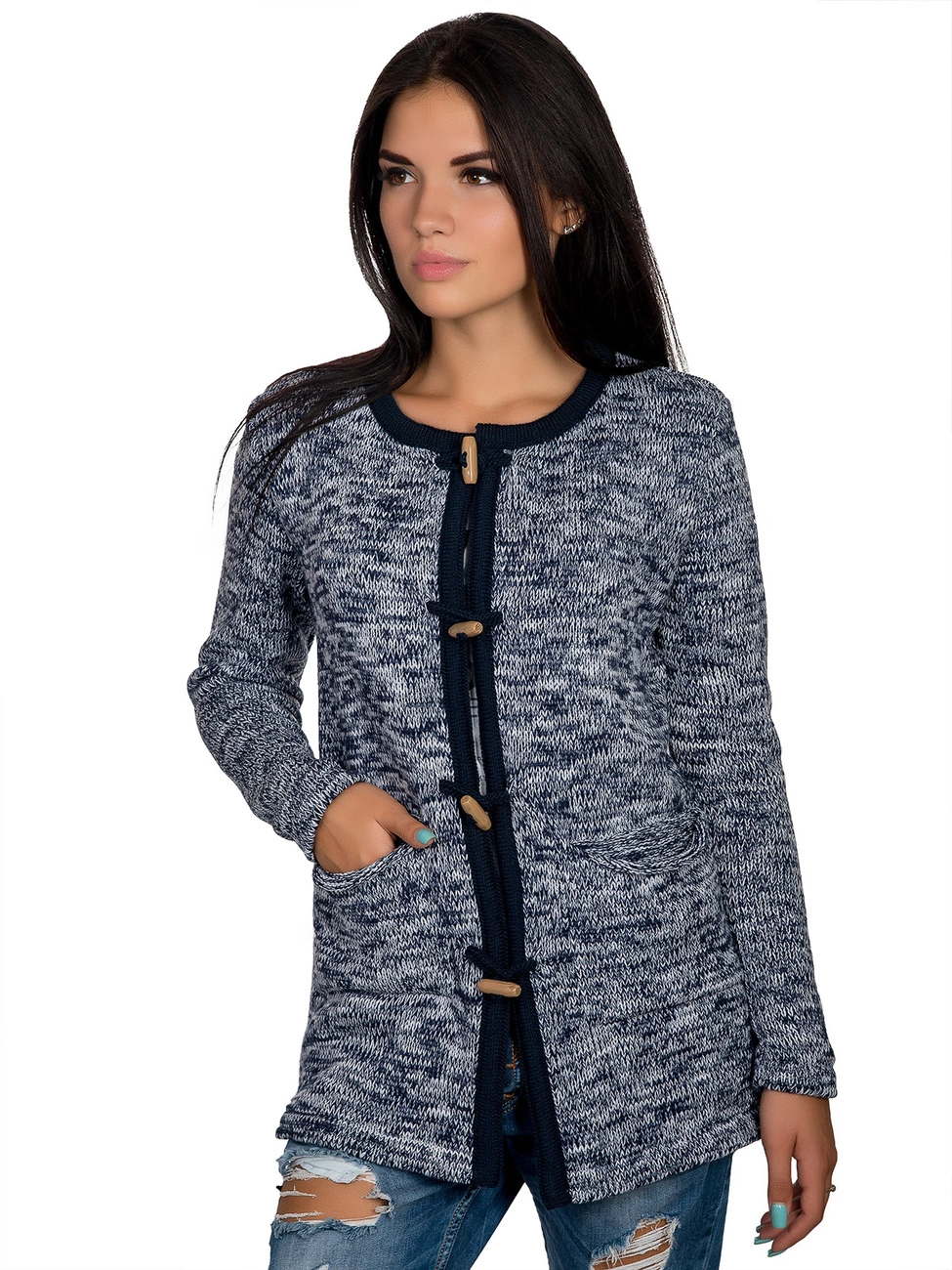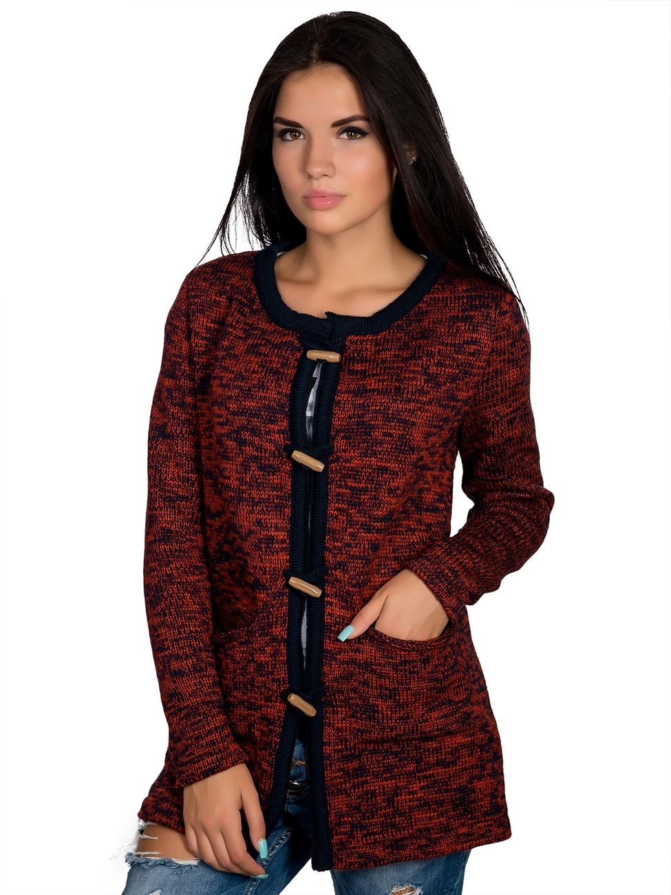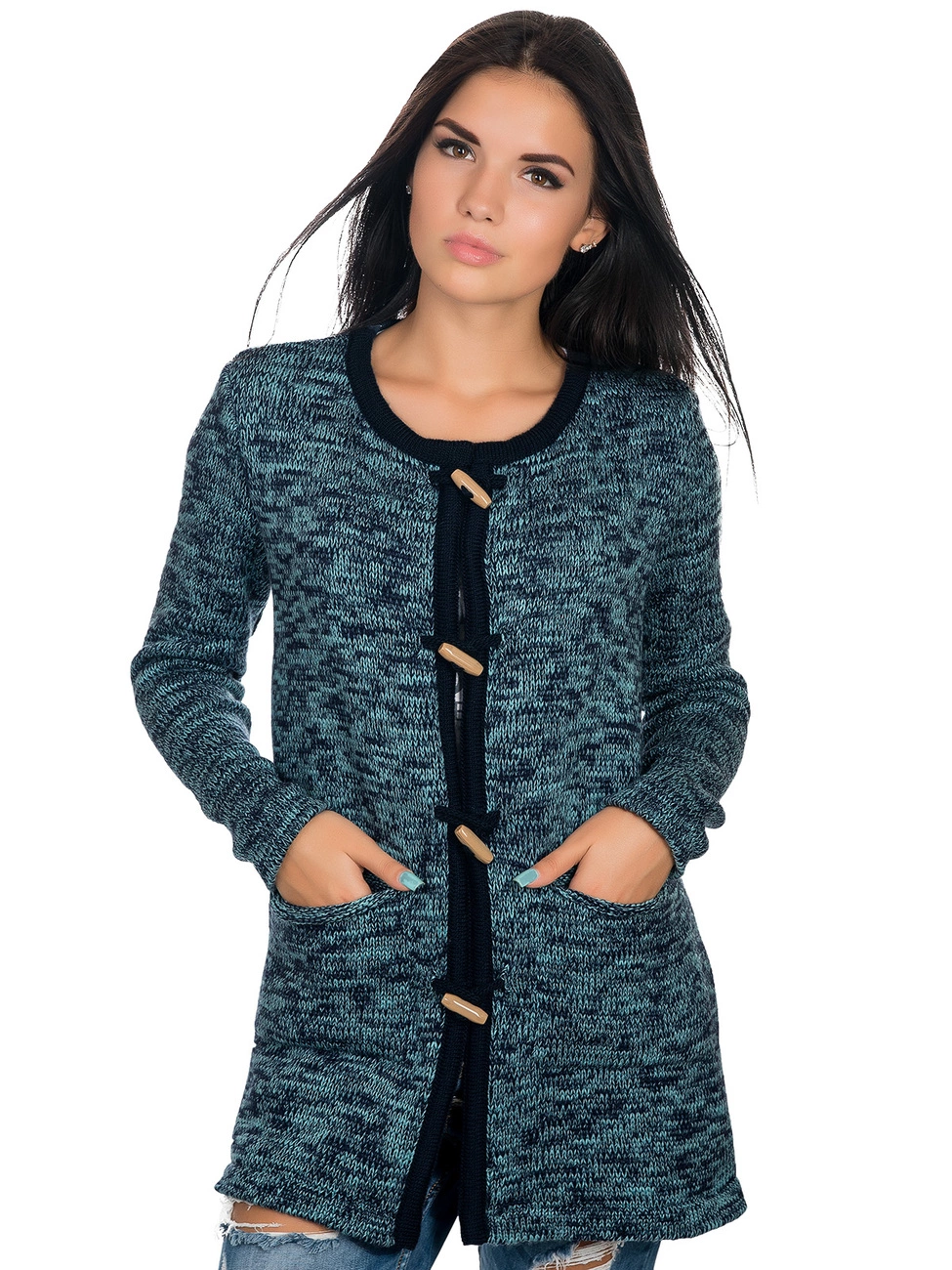 Очень теплый, стильный вязанный кардиган, выполнен из мягкой, приятной на ощупь пряжи. Изюминку кардигану придает застежка в виде крупных стильных пуговиц, что делает его утонченным и изысканным. Он защит от ветра и холодов. Представленный наряд станет незаменимым в Вашем гардеробе!