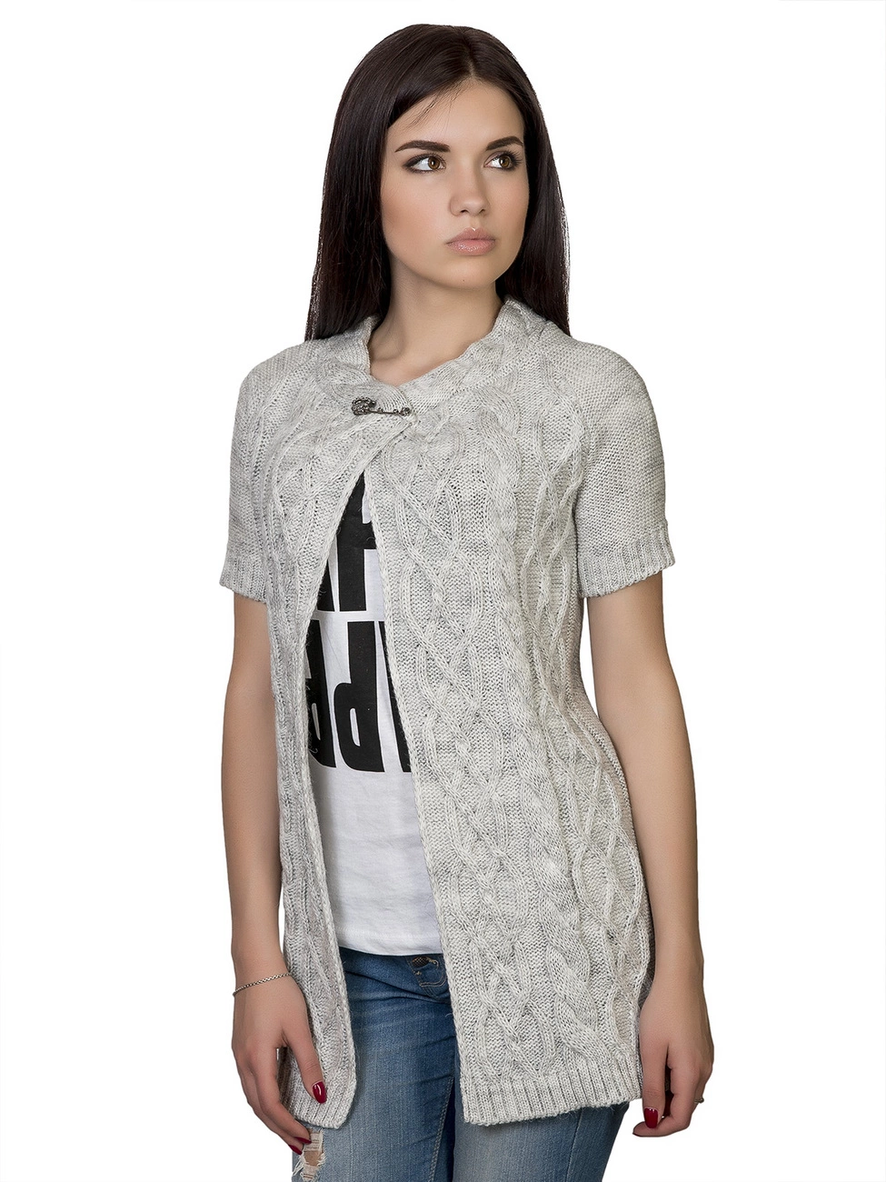 Теплый, стильный вязаный кардиган, прямого силуэта, короткий