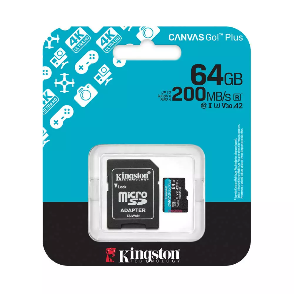Карта пам'яті Kingston Canvas GO! Plus microSDHC Class 10 UHS-I U3(R200MB/s), 64GB
