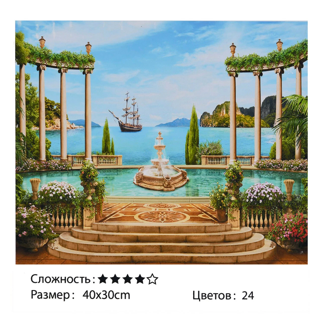 холста - хлопок; Размер холста - 40 х 30 см. Краски в наборе -