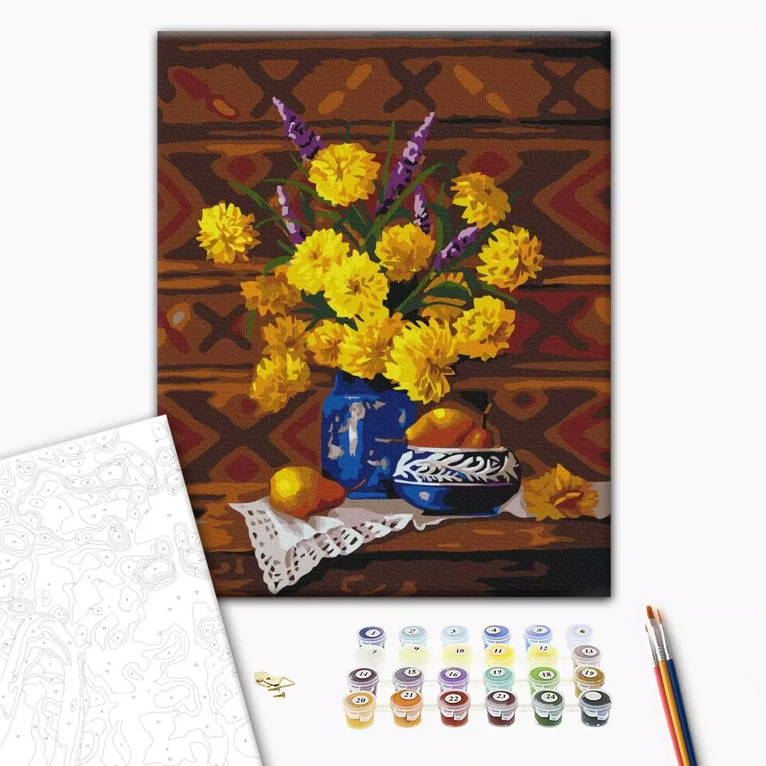 нанесеною пронумерованій схемою майбутньої картини 3 кисті різної