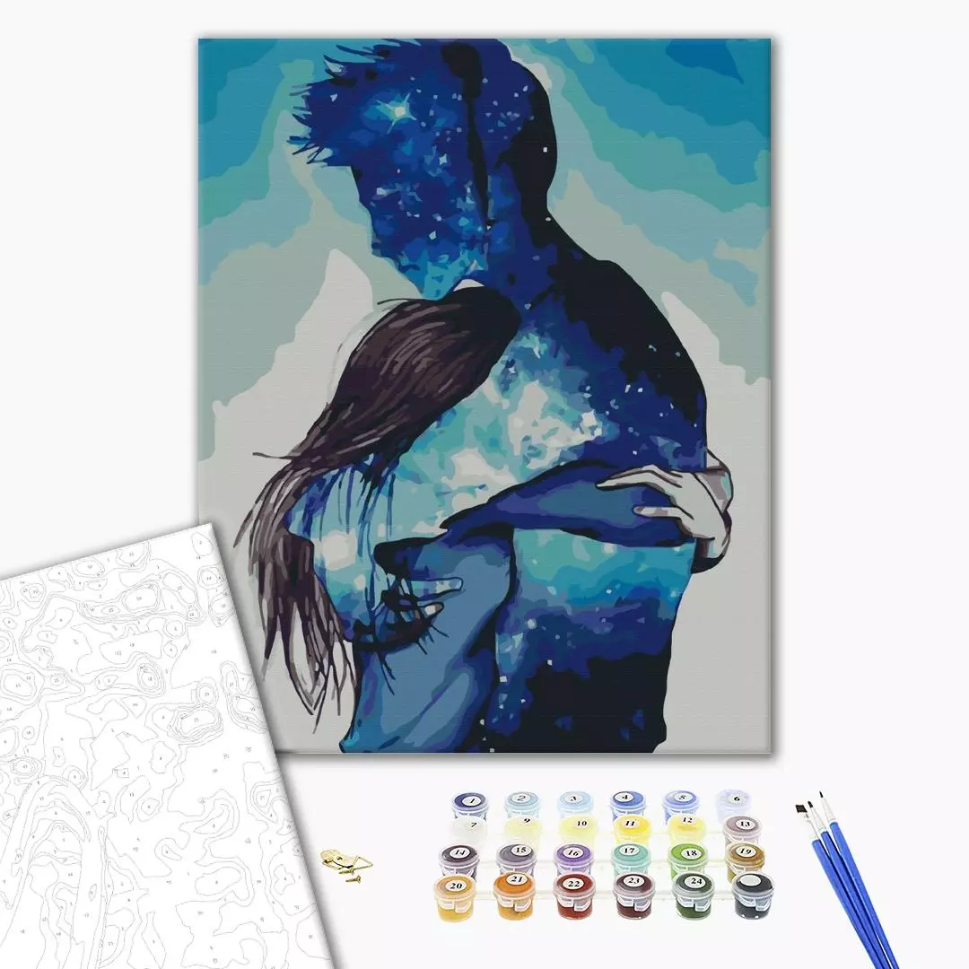 У набір входить: бавовняне полотно на дерев'яному підрамнику з нанесеною пронумерованій схемою майбутньої картини 3 кисті різної товщини акрилові пронумеровані фарби кріплення до стіни для готової картини