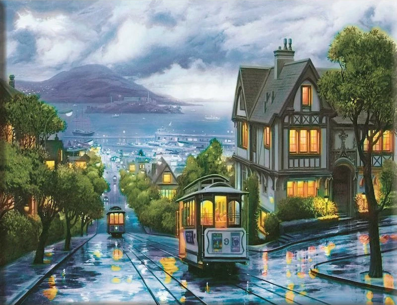 Нічний трамвай – атмосферна картина за номерами. Все, що потрібно для захоплюючого процесу – у комплекті. На спеціальну картонну основу вже нанесено відповідні контури ділянок. Посередині контуру вказаний номер фарби, яку потрібно використовувати для малювання.