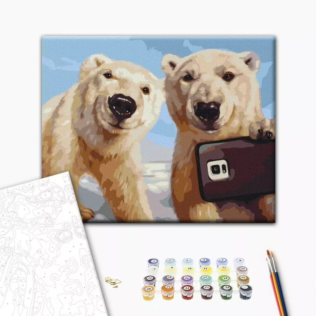 У набір входить: бавовняне полотно на дерев'яному підрамнику з нанесеною пронумерованій схемою майбутньої картини 3 кисті різної товщини акрилові пронумеровані фарби кріплення до стіни для готової картини