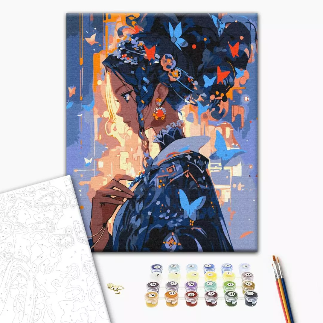 У набір входить: бавовняне полотно на дерев'яному підрамнику з нанесеною пронумерованій схемою майбутньої картини 3 кисті різної товщини акрилові пронумеровані фарби кріплення до стіни для готової картини