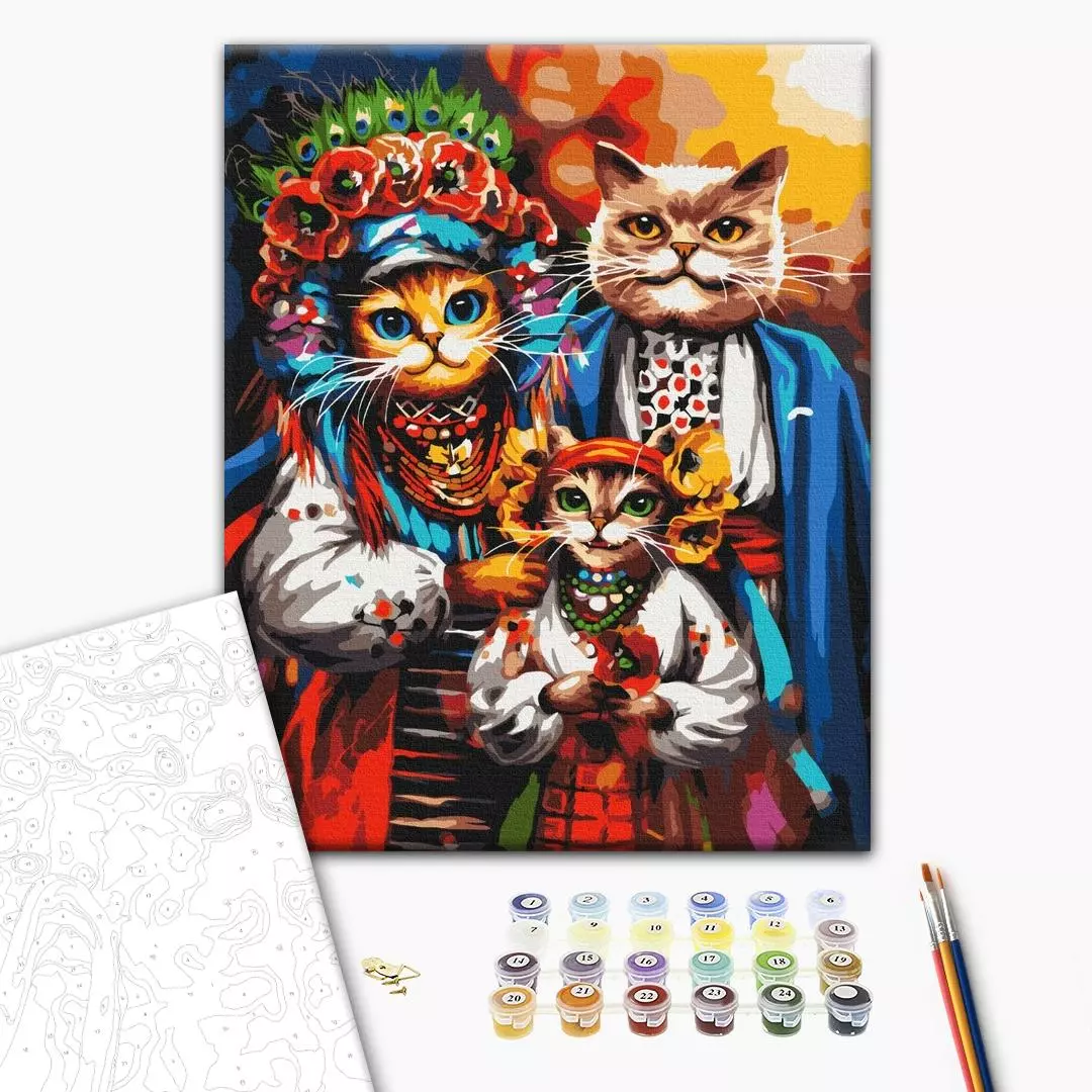 Картина за номерами: Сімя котиків-козаків ©Маріанна Пащук 40х50