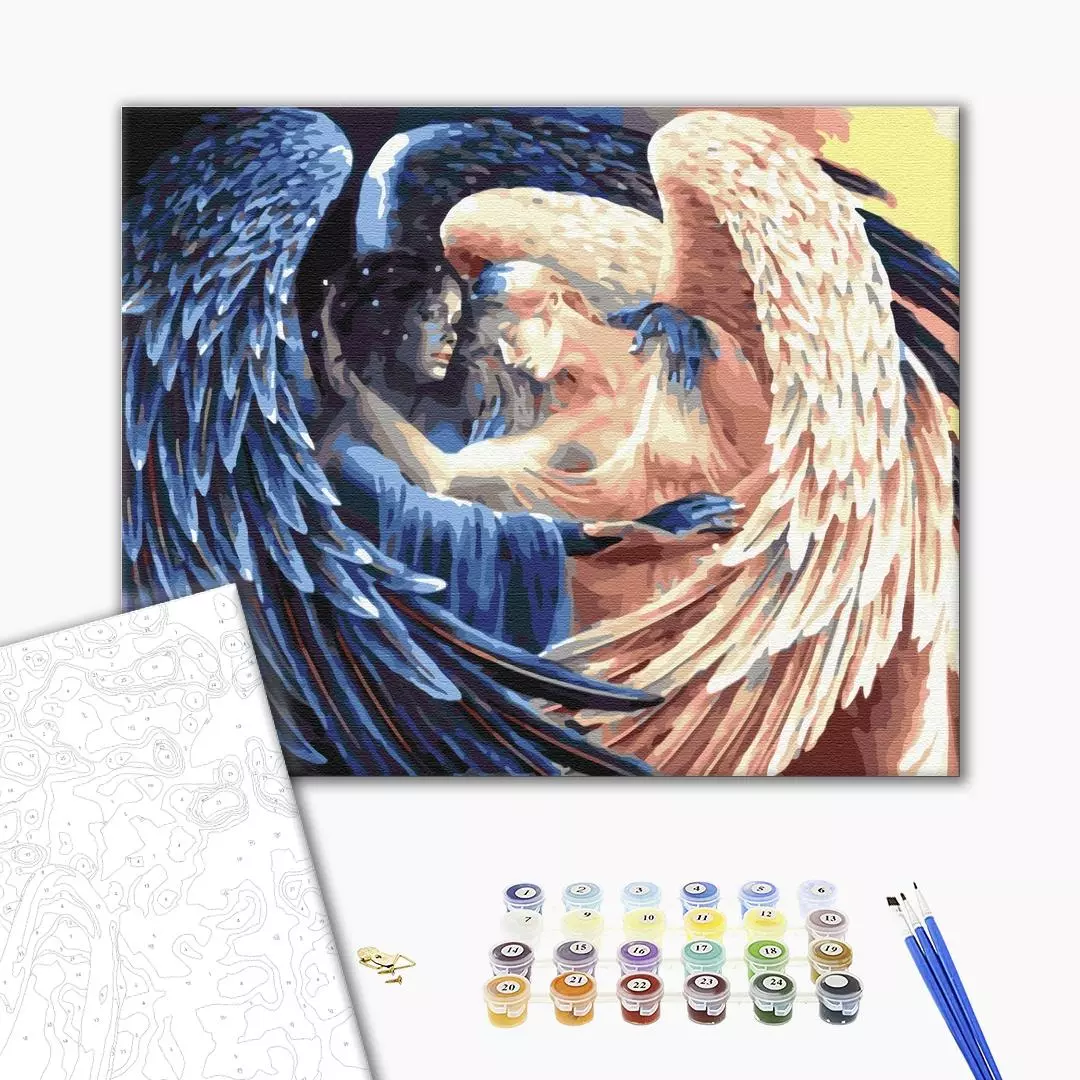 У набір входить: бавовняне полотно на дерев'яному підрамнику з нанесеною пронумерованій схемою майбутньої картини 3 кисті різної товщини акрилові пронумеровані фарби кріплення до стіни для готової картини
