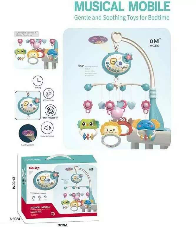 Музична карусель 648 A-66 (36/2) мелодії, підсвічування, проєктор, таймер вимкнення, 5 підвісок, в коробці