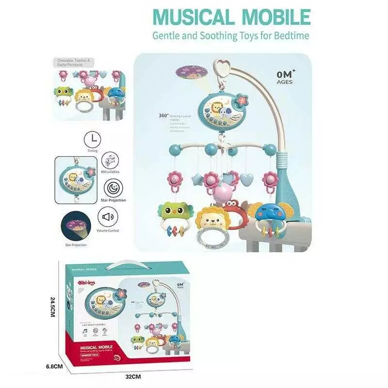 Музична карусель 648 A-66 (36/2) підсвічування, проєктор, колискові, таймер, озвучування англійською мовою, брязкальця, в коробці