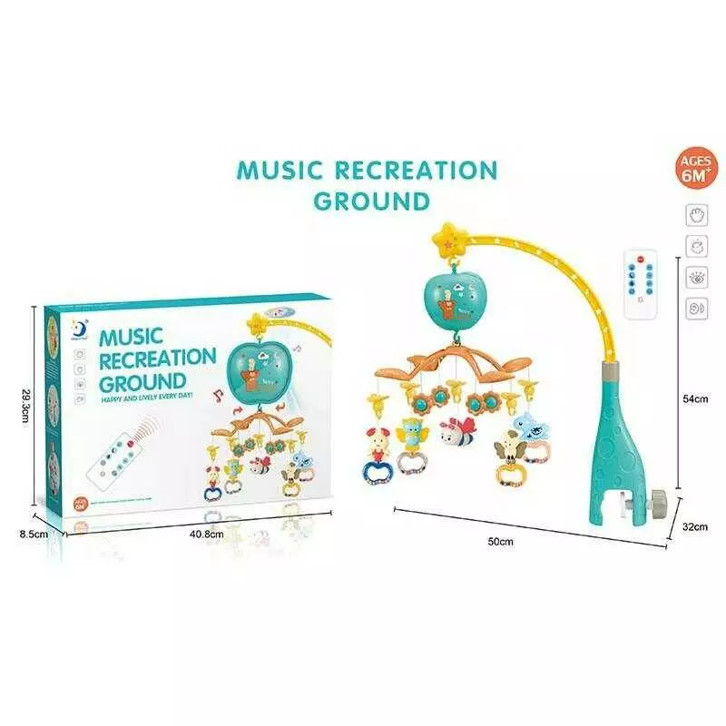 Карусель HL 2020-64 (18/2) оберти, світло, проєкція, 5 підвісок, гумові елементи, таймер,колискові мелодії,звуки води,веселі мелодії,пульт, в корбці