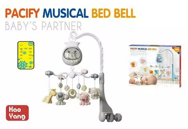 Музична карусель N 5033 A (24) підсвічування, звуки, мелодії, оберти на 360°, таймер, 4 підвіски, звук серцебиття, пульт, в коробці