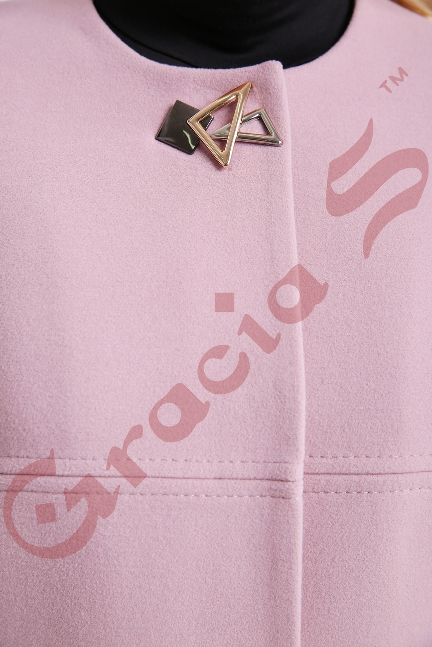 акцентом из изящной броши на полукруглом воротнике. Карманы на