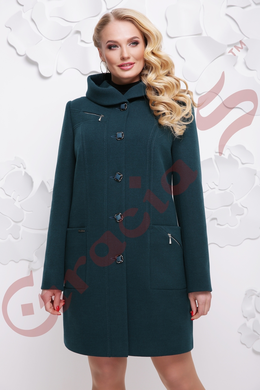полуприталенный силуэт и пришивной капюшон, который защитит голову