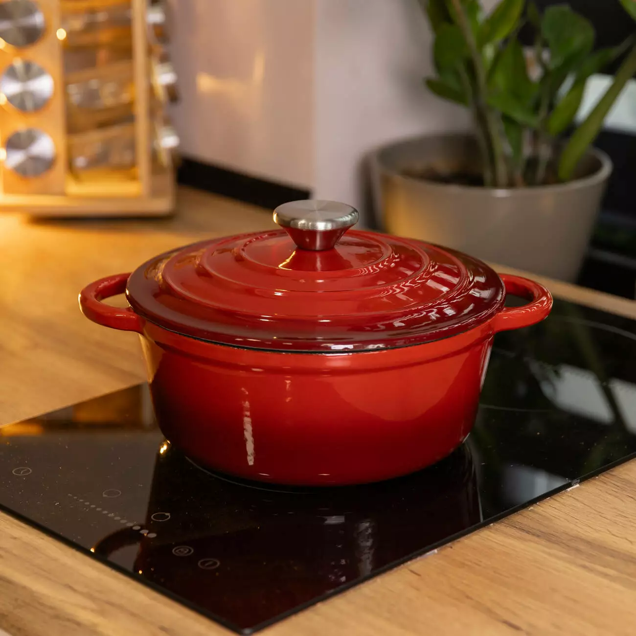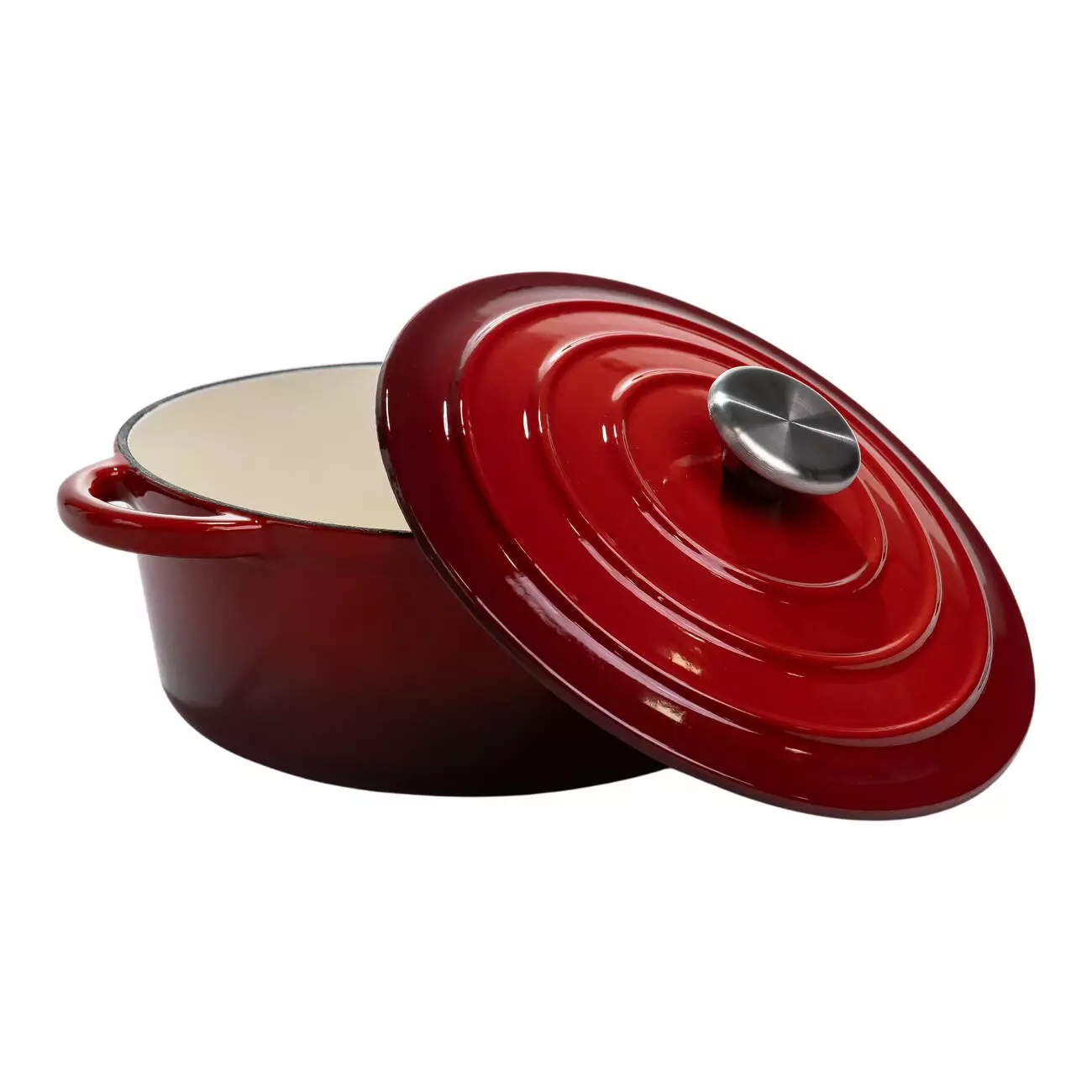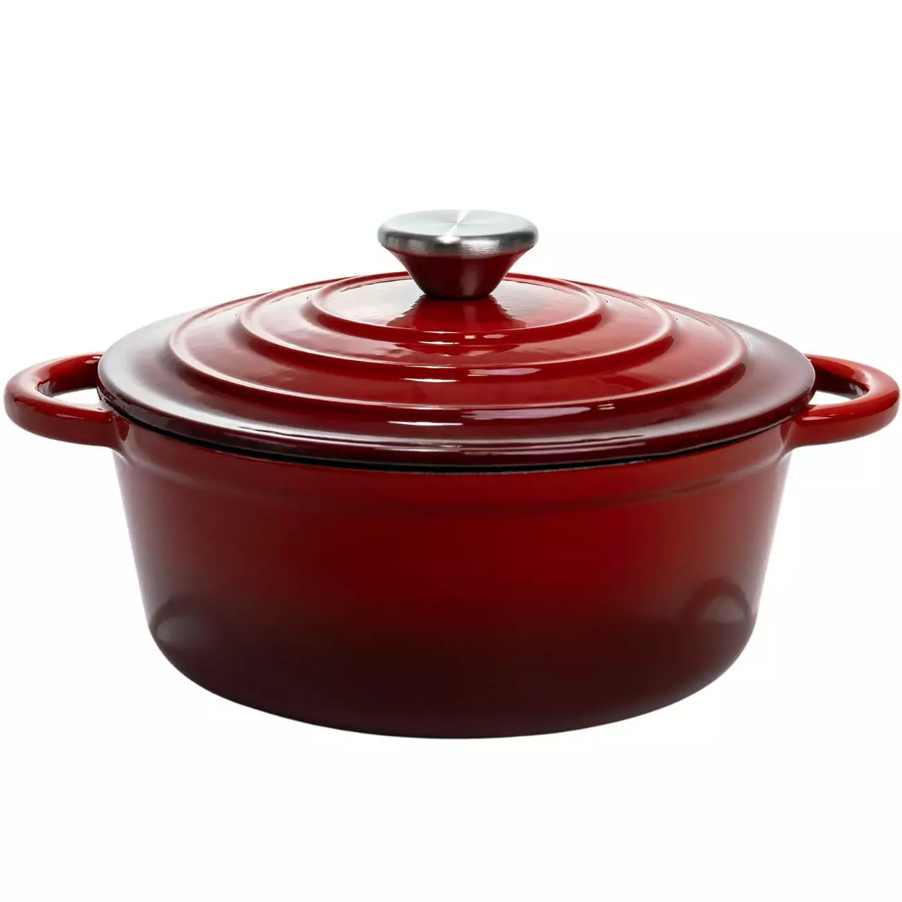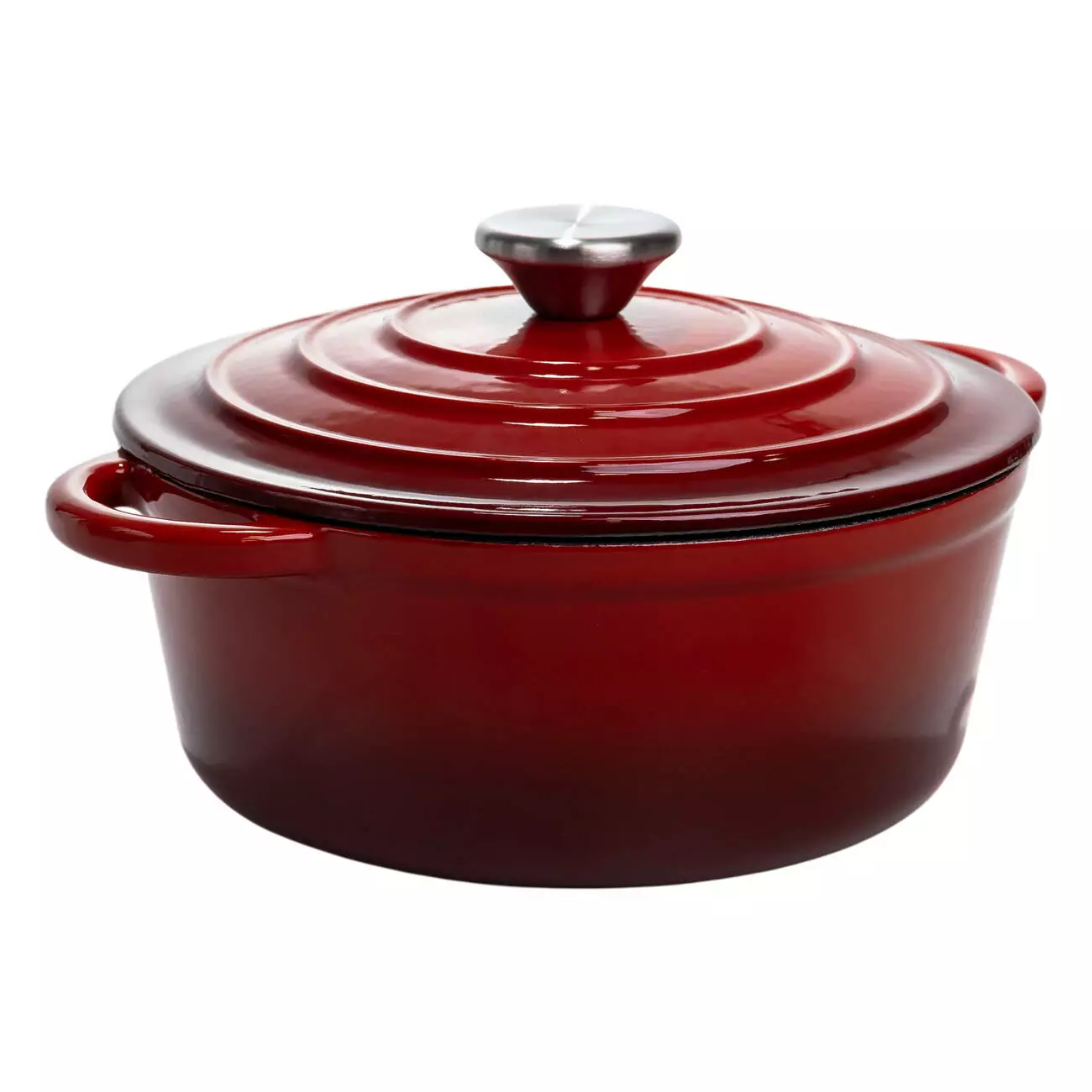 Чавунна каструля об'ємом 2,5 л з міцним емальованим покриттям та кришкою-куполом. Ідеальна для тушкування, запікання та повільного томління – зберігає рівномірне тепло та соковитість страв.