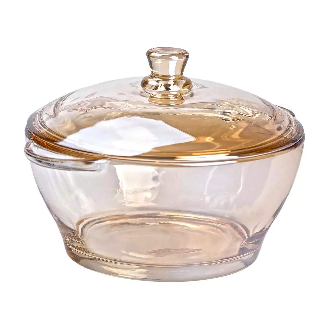Каструля виготовлена ​​із загартованого скла, що забезпечує виняткову прозорість. Завдяки цьому матеріалу, каструля легко витримує вплив температур, що робить її ідеальною для використання в мікрохвильовій печі. Така каструля відмінно підійде для сервірування столу, завдяки чому її можна використовувати для перших страв. Товсте скло довго зберігає температуру і їжа залишатиметься теплою протягом тривалого часу. При цьому скло не вступає в реакцію з їжею, не змінює її смак.