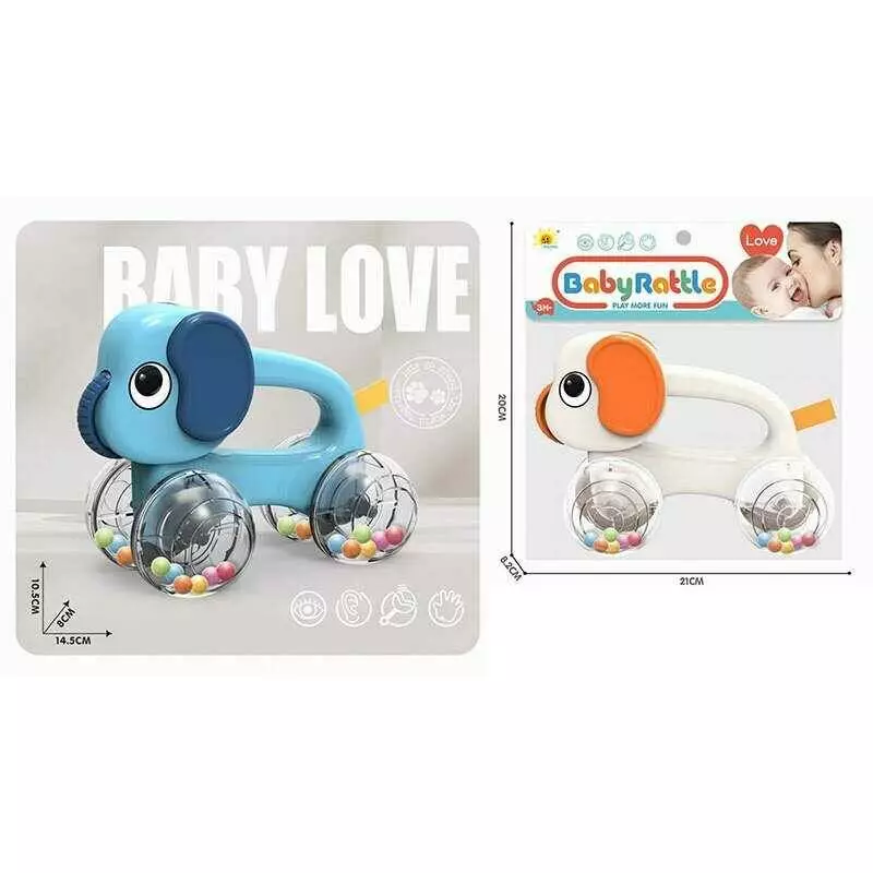 Каталка 2859-3 (192/2) 2 кольори, довжина 14.5 см, брязкальце: прозорі колеса з кульками, ручка для тримання, в пакеті