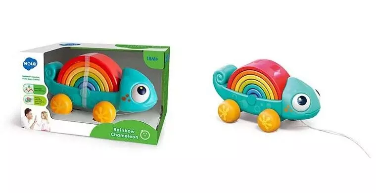 Райдужний хамелеон приготував малечі 3 цікавих забавки: веселу каталочку, балансир та кольорову пірамідку. Іграшка представлена у вигляді тематичної платформи, на якій розміщені 7 кольорових елементів. Іграшка дає повну творчу свободу, та дозволяє використовувати ігрові елементи, як забажається: можна створювати на платформі різні конструкції, зберігаючи при цьому баланс, або скласти цікаві фігури, як намальовано в інструкції. Яку б забавку не обрав малюк цього разу, вона цілком заволодіє його увагою і наповнить дозвілля яскравими емоціями. Особливості: - 3в1: каталка, балансир, пірамідка; - гармонійне поєднання яскравих кольорів; - 7 ігрових елементів; - платформа виконана у формі хамелеона; - сприяє розвитку дрібної моторики, сенсорного та зорового сприйняття; - розмір: 28х12х14 см.