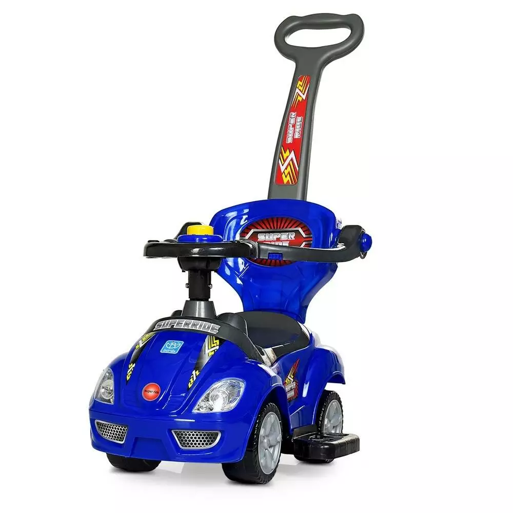 Фотография 1 товарной позиции интернет-магазина детских игрушек www.smarttoys.com.ua Каталка-толокар M 4205-4 батьківська ручка, кермо-пискавка, багажник під сидінням, муз., синій.