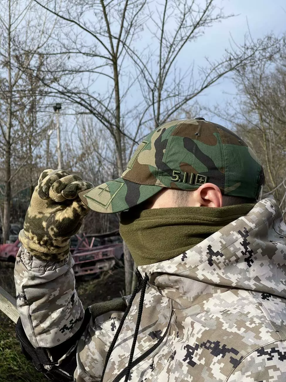 - Спереду на лобі є липучка.