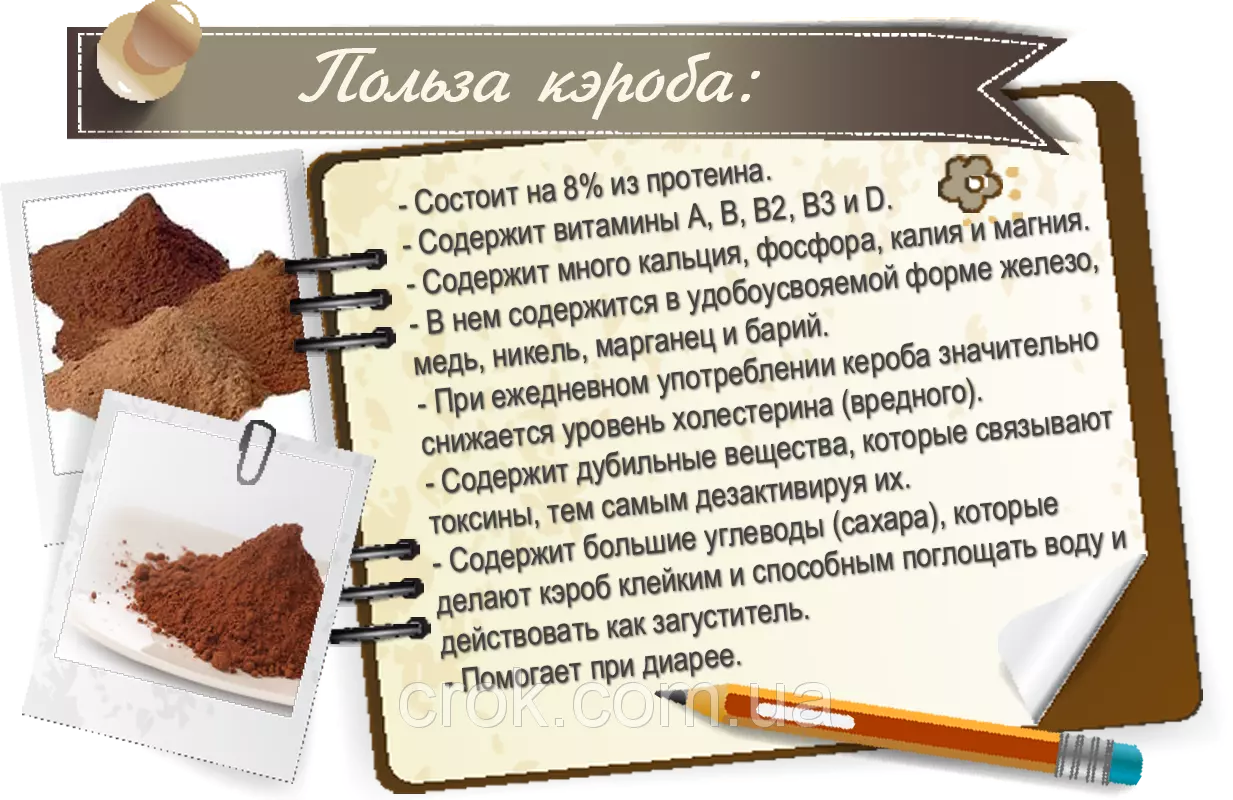 Вироби з кэроба можна давати дітям за умови, що зміст глюкози в кінцевому продукті відповідає вимогам мінохоронздоров'я.