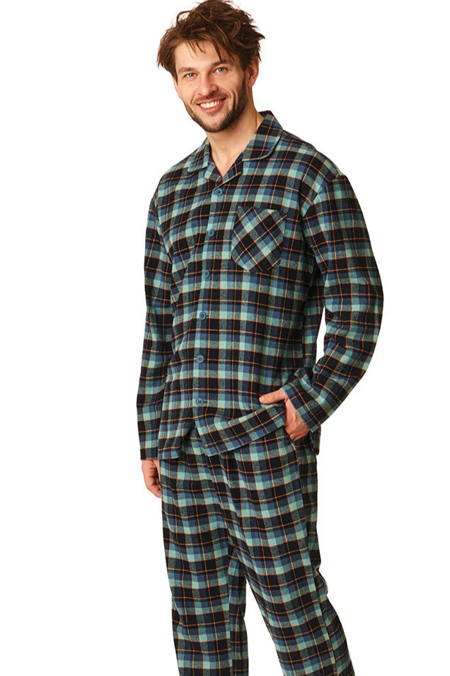 Мужская пижама из натуральной хлопчатобумажной фланели, блузка с